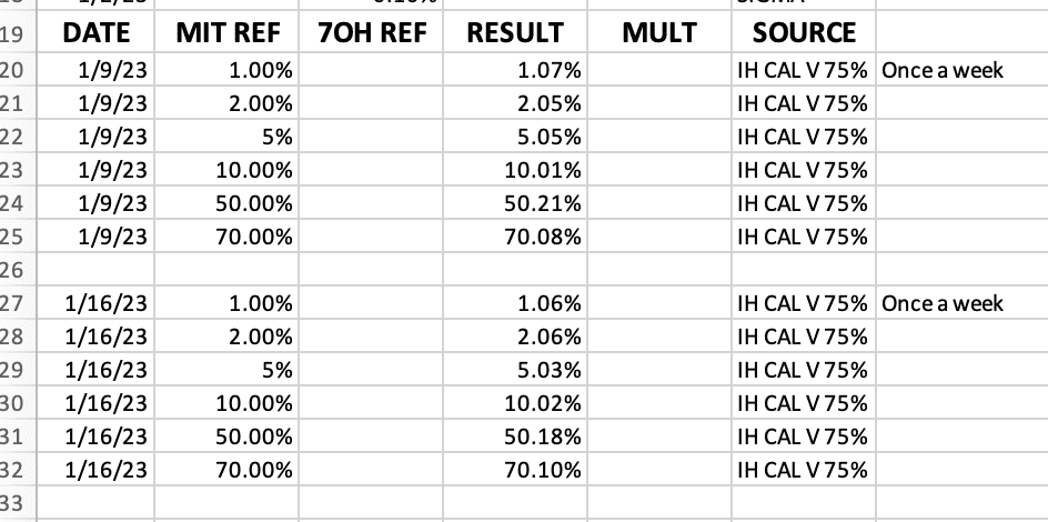 But quarterly calibrations aren’t enough for our obsessive-compulsive selves and staff. And this is where the internal set of reference samples we crafted play a critical role. Below is an image from our log book from early in 2023. Each tech is responsible for running this entire series of tests once per week.